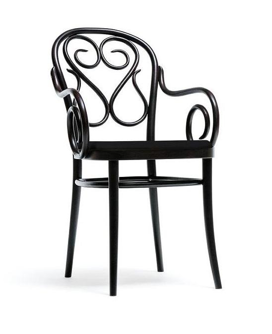 Materials: Bentwood armchair. Beechwood frame with stain or lacquered finish. Upholstered seat with fabric or leather.